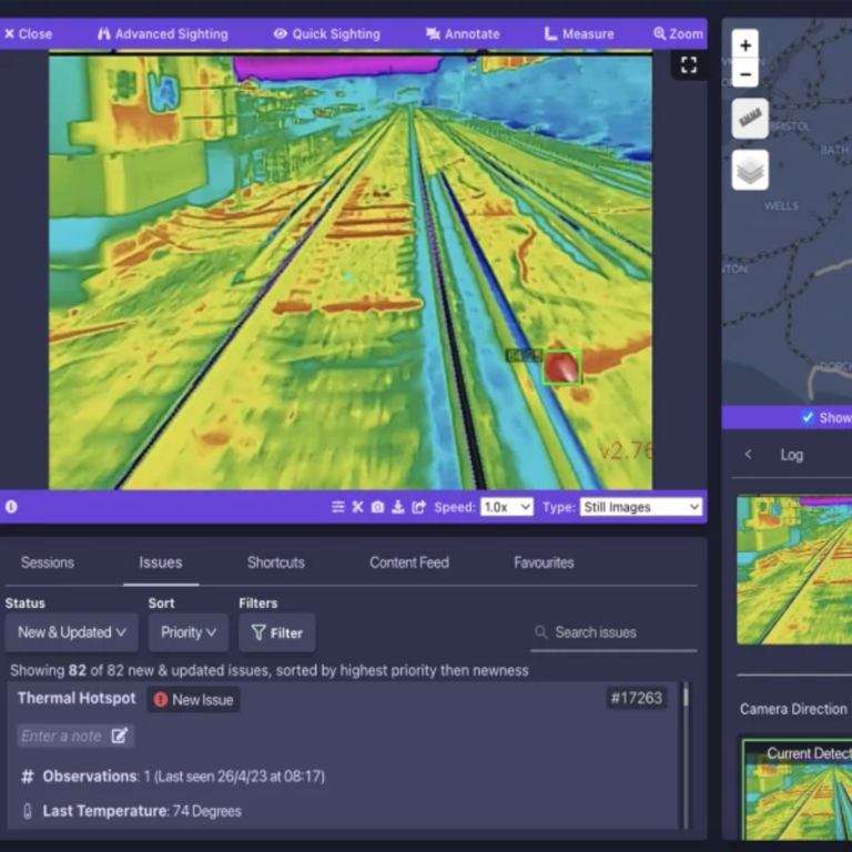 The innovative approach involves using forward-facing video technology to capture footage from trains travelling across the rail network. Machine learning and AI automatically collect data from the critical line-side environment, understanding the potential risks for example with ballast, rails and spare engineering materials, graffiti and much more, and report it to the clients – the rail companies.